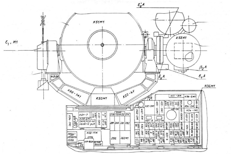 Blöcke im Kampfraum der 1S32: K 81-5A PPI-Sichtgerät / Rundsichtgerät